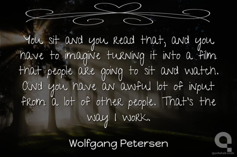 You sit and you read that, and you have to imagine turning it into a film that people are going to sit and watch. And you have an awful lot of input from a lot of other people. That's the way I work.