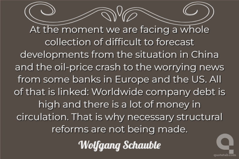 At the moment we are facing a whole collection of difficult to forecast developments from the situation in China and the oil-price crash to the worrying news from some banks in Europe and the US. All of that is linked: Worldwide company debt is high and there is a lot of money in circulation. That is why necessary structural reforms are not being made.