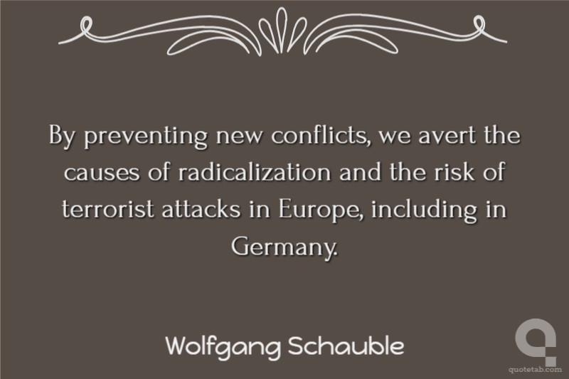 By preventing new conflicts, we avert the causes of radicalization and the risk of terrorist attacks in Europe, including in Germany.