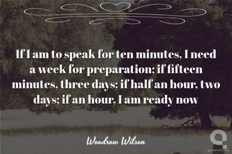 If I am to speak ten minutes, I need a week for preparation; if fifteen minutes, three days; if half an hour, two days; if an hour, I am ready now.