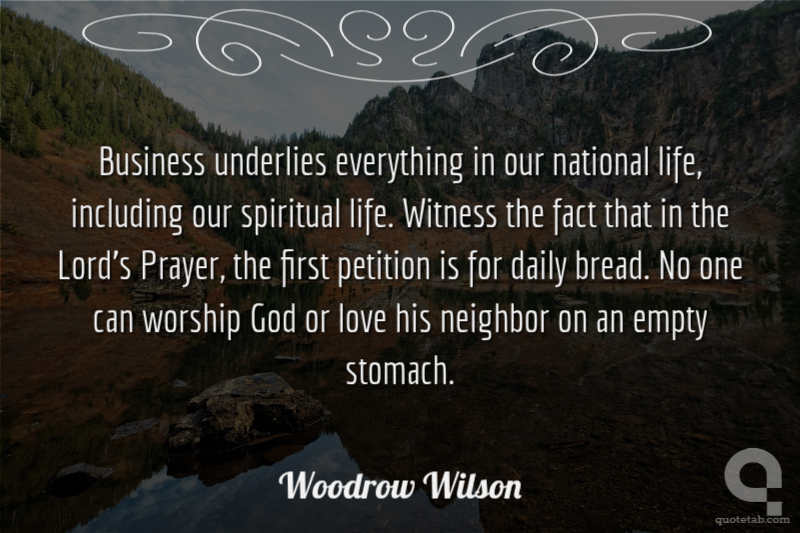 Business underlies everything in our national life, including our spiritual life. Witness the fact that in the Lord's Prayer, the first petition is for daily bread. No one can worship God or love his neighbor on an empty stomach.