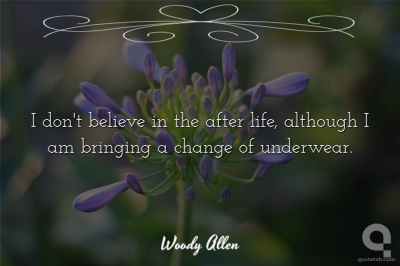 I don't believe in the after life, although I am bringing a change of underwear.