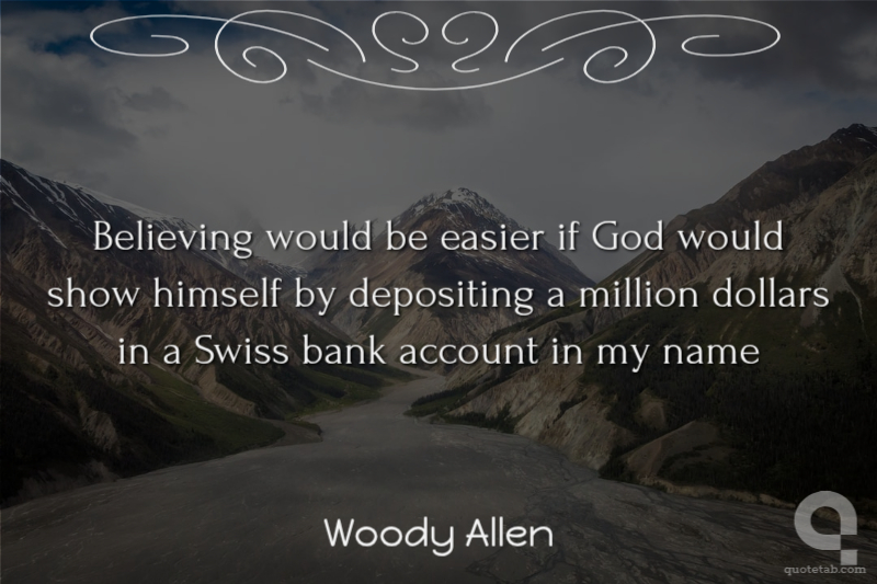 Believing would be easier if God would show himself by depositing a million dollars in a Swiss bank account in my name
