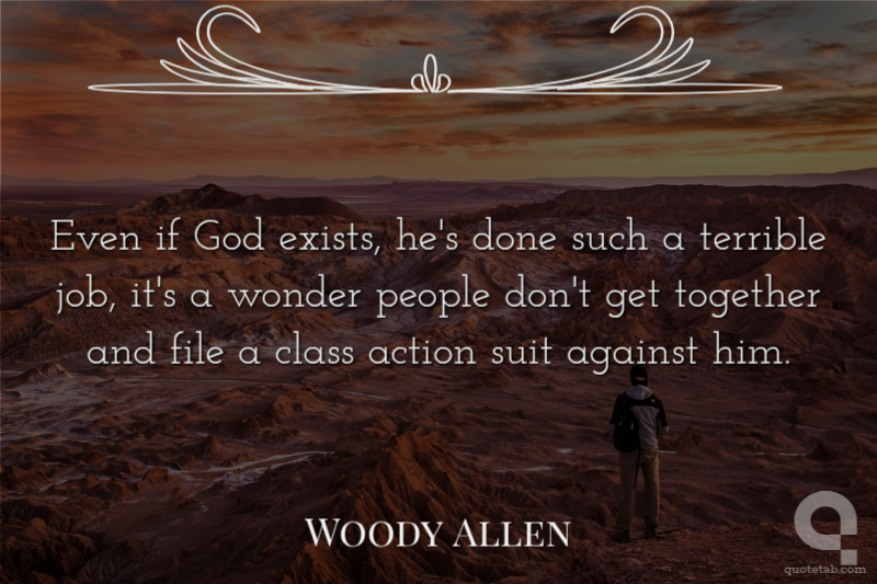 Even if God exists, he's done such a terrible job, it's a wonder people don't get together and file a class action suit against him.