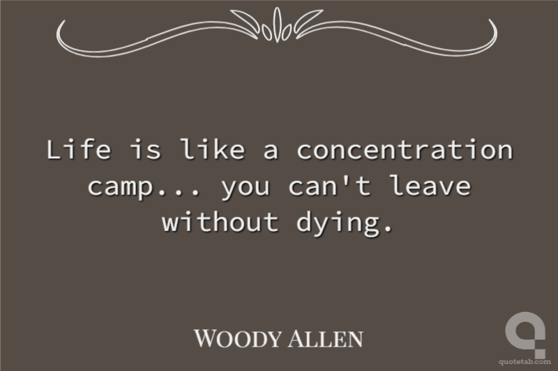 I feel that life is divided into the horrible and the miserable. That's the two categories. The horrible are like, I don't know, terminal cases, you know, and blind people, crippled. I don't know how they get through life. It's amazing to me. And the miserable is everyone else. So you should be thankful that you're miserable, because that's very lucky, to be miserable.