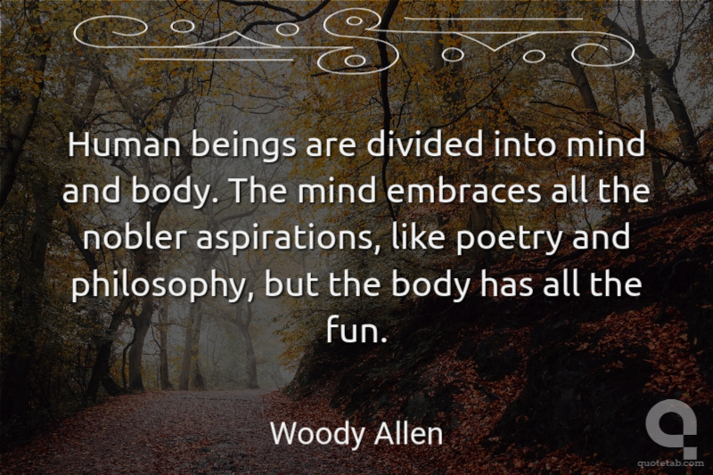 Human beings are divided into mind and body. The mind embraces all the nobler aspirations, like poetry and philosophy, but the body has all the fun.