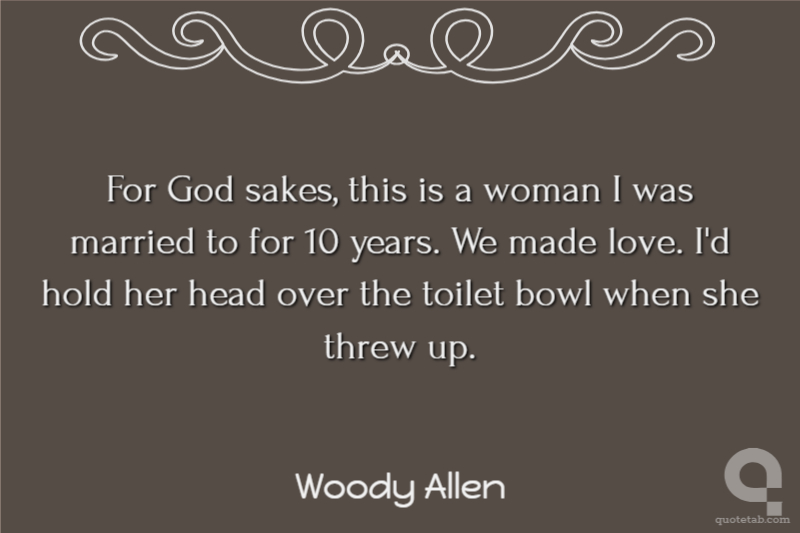 For God sakes, this is a woman I was married to for 10 years. We made love. I'd hold her head over the toilet bowl when she threw up.
