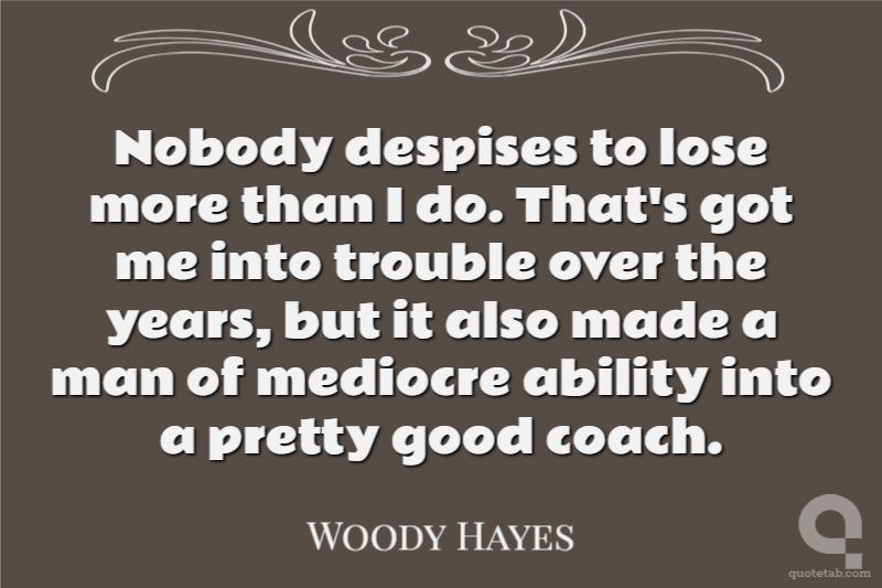 Nobody despises to lose more than I do. That's got me into trouble over the years, but it also made a man of mediocre ability into a pretty good coach.