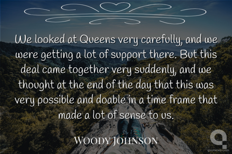 We looked at Queens very carefully, and we were getting a lot of support there. But this deal came together very suddenly, and we thought at the end of the day that this was very possible and doable in a time frame that made a lot of sense to us.