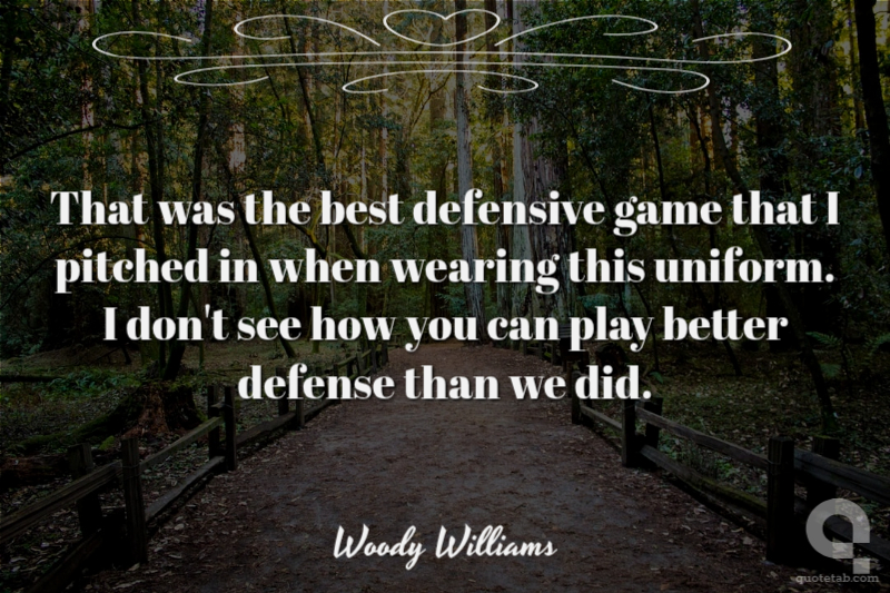 That was the best defensive game that I pitched in when wearing this uniform. I don't see how you can play better defense than we did.