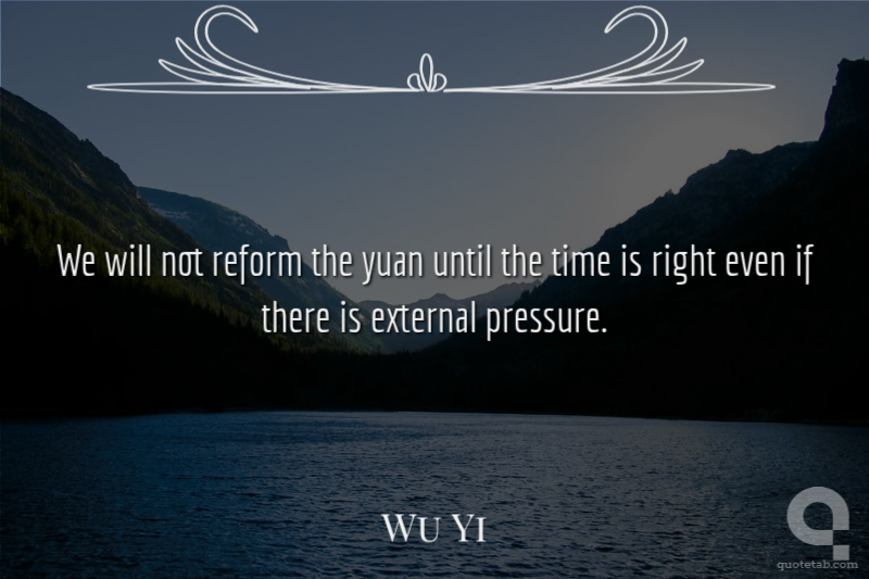 We are now preparing for the reform of the yuan's exchange rate system. For such reforms to take place, we need good economic conditions... and we need to do it under tight control.