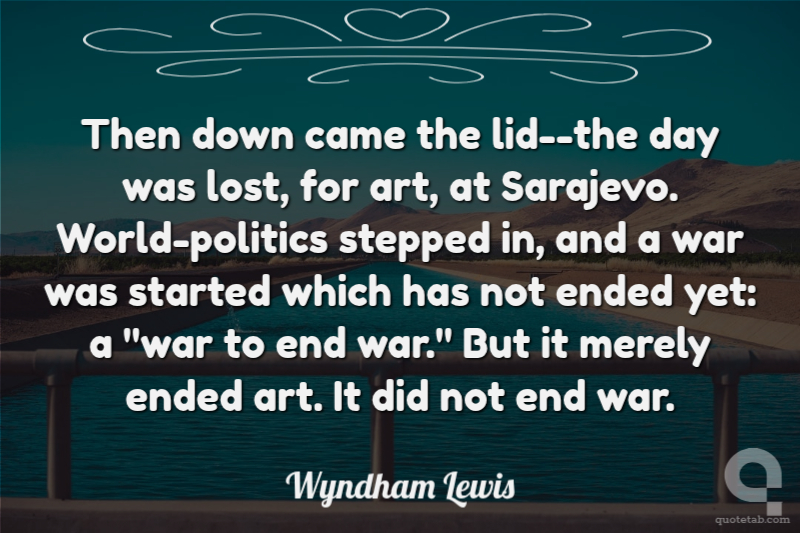 Then down came the lid--the day was lost, for art, at Sarajevo. World-politics stepped in, and a war was started which has not ended yet: a "war to end war." But it merely ended art. It did not end war.