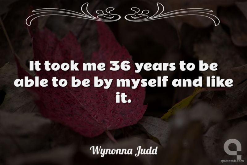 It took me 36 years to be able to be by myself and like it.