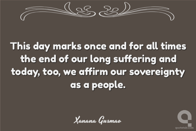 This day marks once and for all times the end of our long suffering and today, too, we affirm our sovereignty as a people.