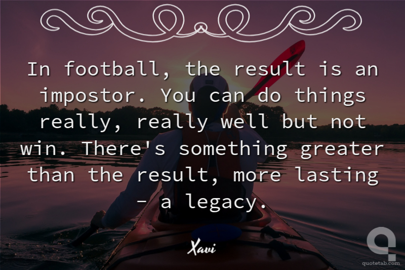 In football, the result is an impostor. You can do things really, really well but not win. There's something greater than the result, more lasting - a legacy.