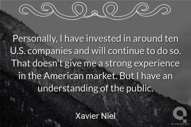 Personally, I have invested in around ten U.S. companies and will continue to do so. That doesn't give me a strong experience in the American market. But I have an understanding of the public.