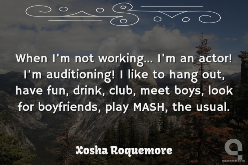 When I'm not working... I'm an actor! I'm auditioning! I like to hang out, have fun, drink, club, meet boys, look for boyfriends, play MASH, the usual.