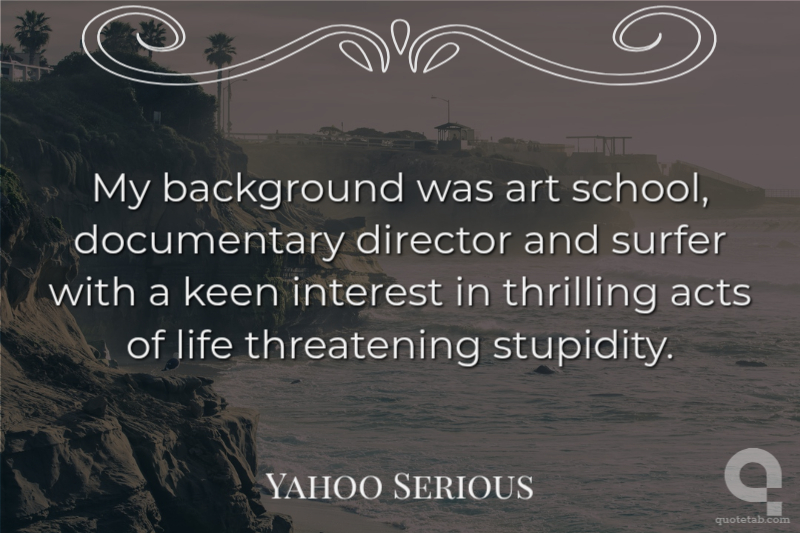 My background was art school, documentary director and surfer with a keen interest in thrilling acts of life threatening stupidity.