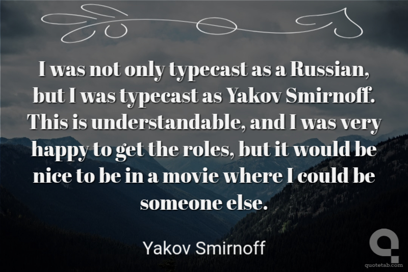 I was not only typecast as a Russian, but I was typecast as Yakov Smirnoff. This is understandable, and I was very happy to get the roles, but it would be nice to be in a movie where I could be someone else.