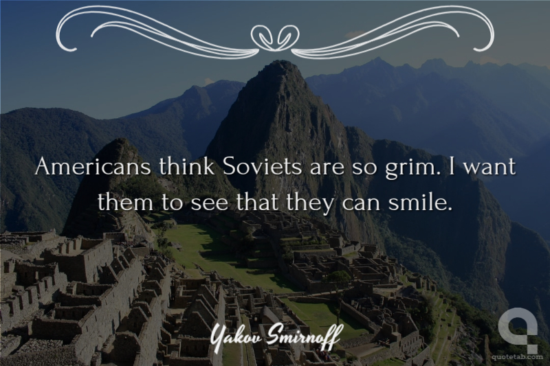 Americans think Soviets are so grim. I want them to see that they can smile.