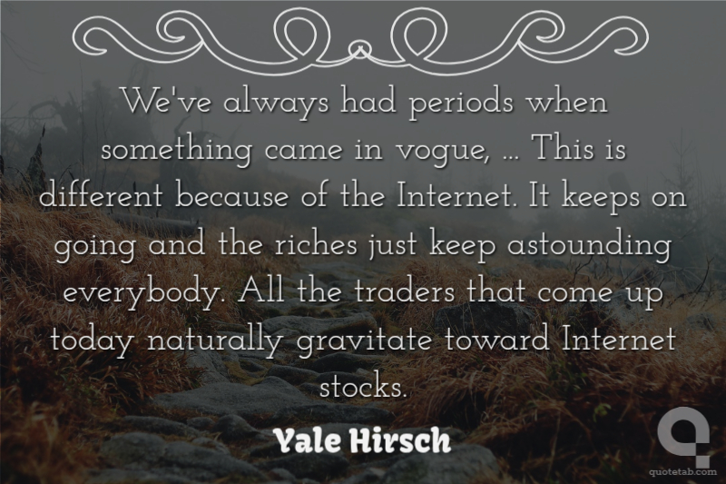 We've always had periods when something came in vogue, ... This is different because of the Internet. It keeps on going and the riches just keep astounding everybody. All the traders that come up today naturally gravitate toward Internet stocks.