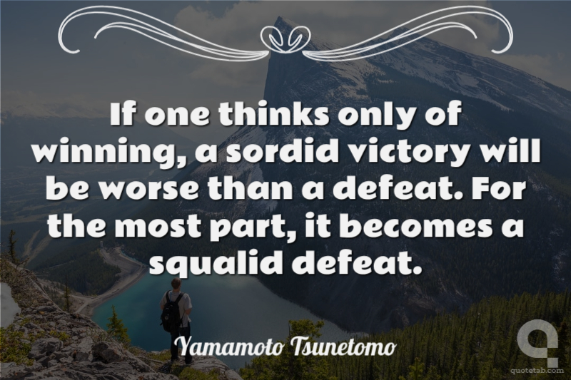 If one thinks only of winning, a sordid victory will be worse than a defeat. For the most part, it becomes a squalid defeat.