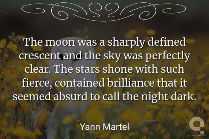 The moon was a sharply defined crescent and the sky was perfectly clear. The stars shone with such fierce, contained brilliance that it seemed absurd to call the night dark.
