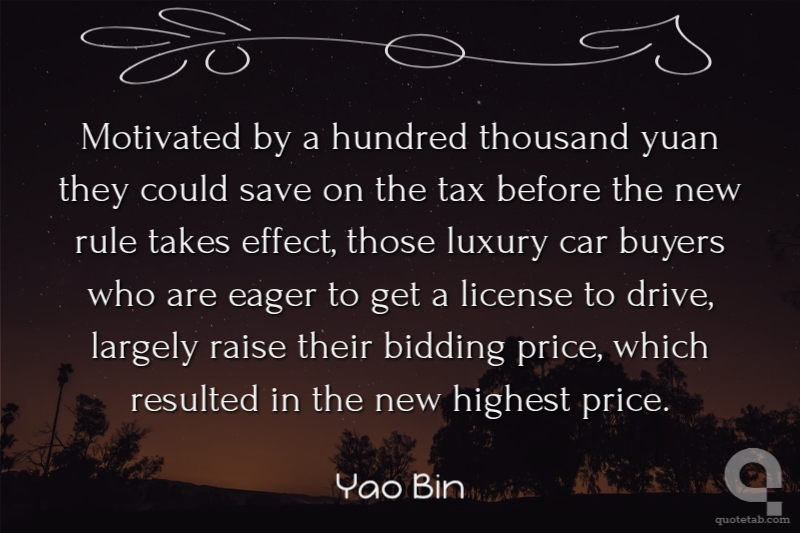 Motivated by a hundred thousand yuan they could save on the tax before the new rule takes effect, those luxury car buyers who are eager to get a license to drive, largely raise their bidding price, which resulted in the new highest price.