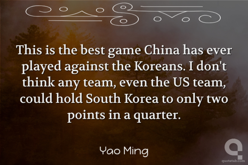 This is the best game China has ever played against the Koreans. I don't think any team, even the US team, could hold South Korea to only two points in a quarter.