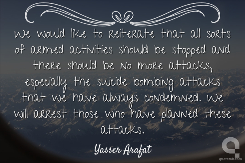 We would like to reiterate that all sorts of armed activities should be stopped and there should be no more attacks, especially the suicide bombing attacks that we have always condemned. We will arrest those who have planned these attacks.
