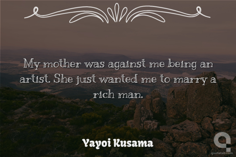 My mother was against me being an artist. She just wanted me to marry a rich man.