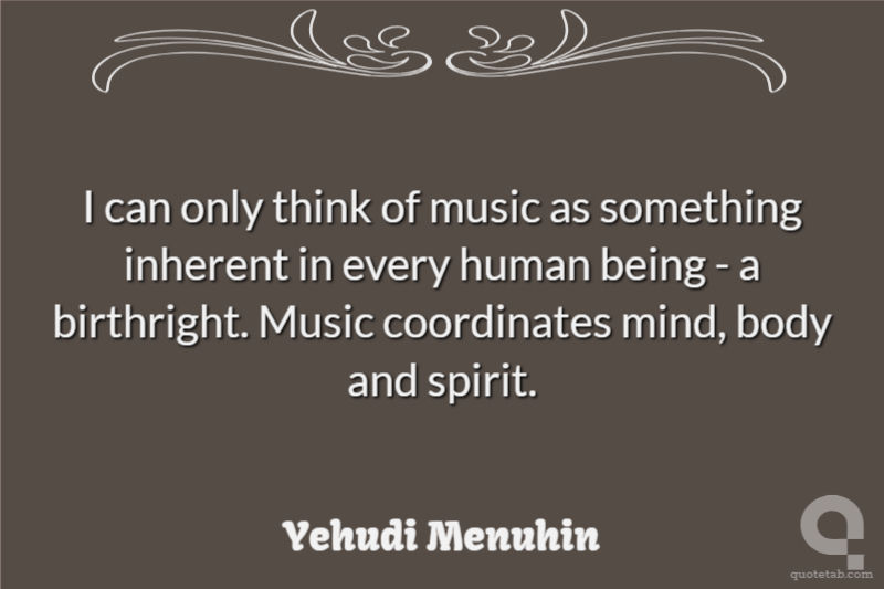 I can only think of music as something inherent in every human being - a birthright. Music coordinates mind, body and spirit.