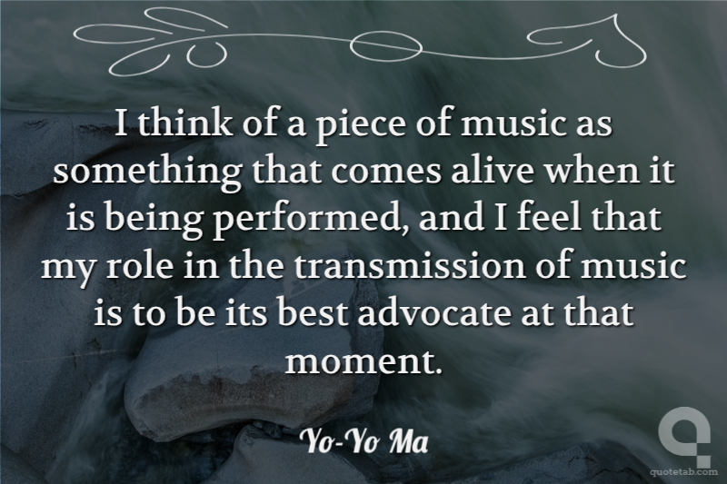 I think of a piece of music as something that comes alive when it is being performed, and I feel that my role in the transmission of music is to be its best advocate at that moment.