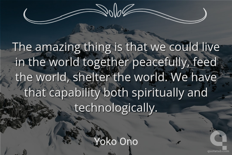 The amazing thing is that we could live in the world together peacefully, feed the world, shelter the world. We have that capability both spiritually and technologically.