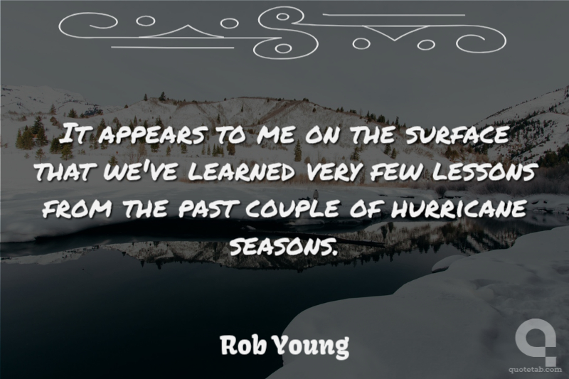 It appears to me on the surface that we've learned very few lessons from the past couple of hurricane seasons.