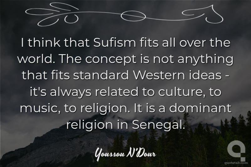 I think that Sufism fits all over the world. The concept is not anything that fits standard Western ideas - it's always related to culture, to music, to religion. It is a dominant religion in Senegal.