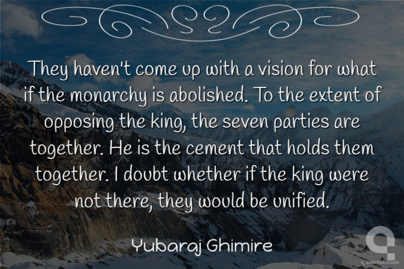 They haven't come up with a vision for what if the monarchy is abolished. To the extent of opposing the king, the seven parties are together. He is the cement that holds them together. I doubt whether if the king were not there, they would be unified.