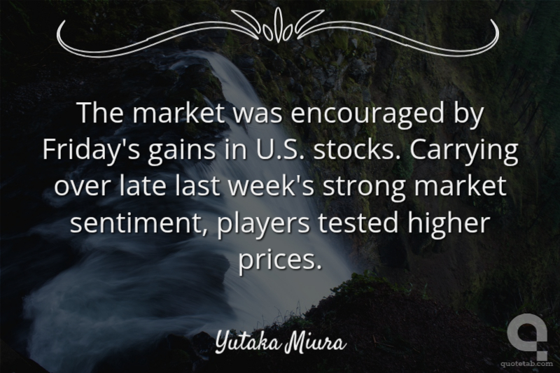 The market was encouraged by Friday's gains in U.S. stocks. Carrying over late last week's strong market sentiment, players tested higher prices.