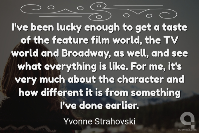 I've been lucky enough to get a taste of the feature film world, the TV world and Broadway, as well, and see what everything is like. For me, it's very much about the character and how different it is from something I've done earlier.