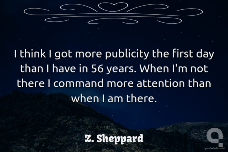 I think I got more publicity the first day than I have in 56 years. When I'm not there I command more attention than when I am there.