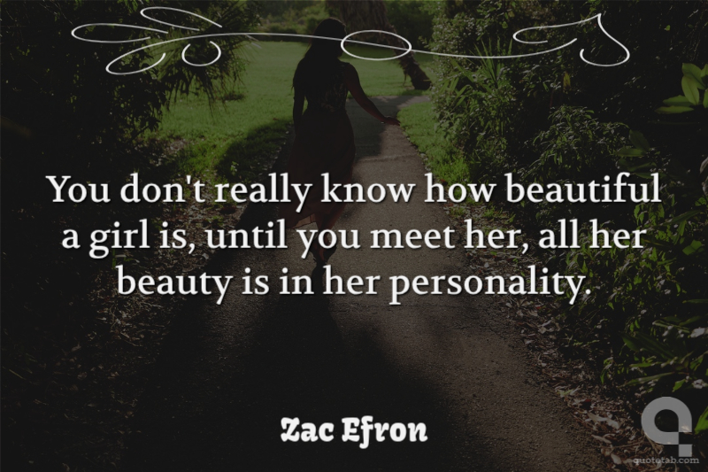 You don't really know how beautiful a girl is, until you meet her, all her beauty is in her personality.
