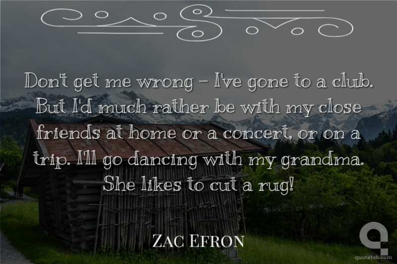 Don't get me wrong - I've gone to a club. But I'd much rather be with my close friends at home or a concert, or on a trip. I'll go dancing with my grandma. She likes to cut a rug!