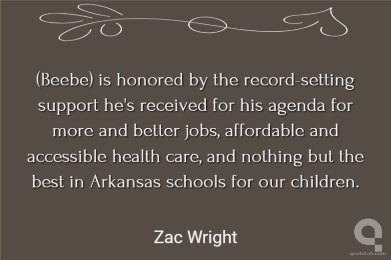 (Beebe) is honored by the record-setting support he's received for his agenda for more and better jobs, affordable and accessible health care, and nothing but the best in Arkansas schools for our children.