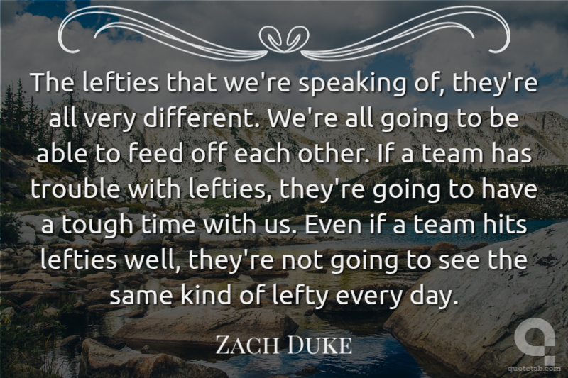 The lefties that we're speaking of, they're all very different. We're all going to be able to feed off each other. If a team has trouble with lefties, they're going to have a tough time with us. Even if a team hits lefties well, they're not going to see the same kind of lefty every day.