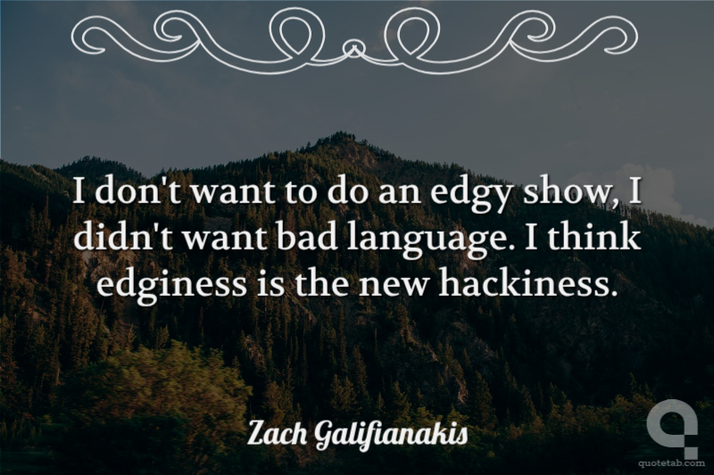 I don't want to do an edgy show, I didn't want bad language. I think edginess is the new hackiness.
