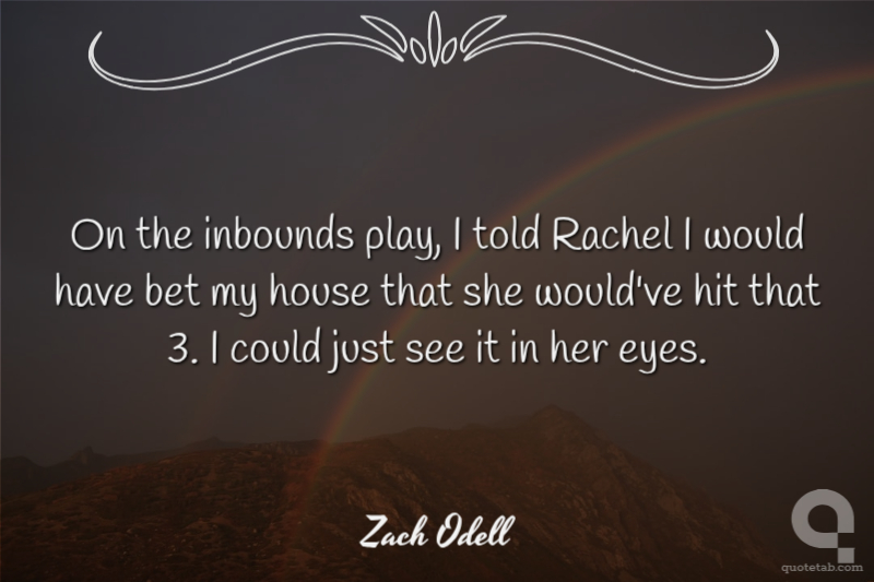 On the inbounds play, I told Rachel I would have bet my house that she would've hit that 3. I could just see it in her eyes.