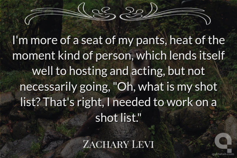I'm more of a seat of my pants, heat of the moment kind of person, which lends itself well to hosting and acting, but not necessarily going, "Oh, what is my shot list? That's right, I needed to work on a shot list."