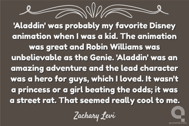 'Aladdin' was probably my favorite Disney animation when I was a kid. The animation was great and Robin Williams was unbelievable as the Genie. 'Aladdin' was an amazing adventure and the lead character was a hero for guys, which I loved. It wasn't a princess or a girl beating the odds; it was a street rat. That seemed really cool to me.
