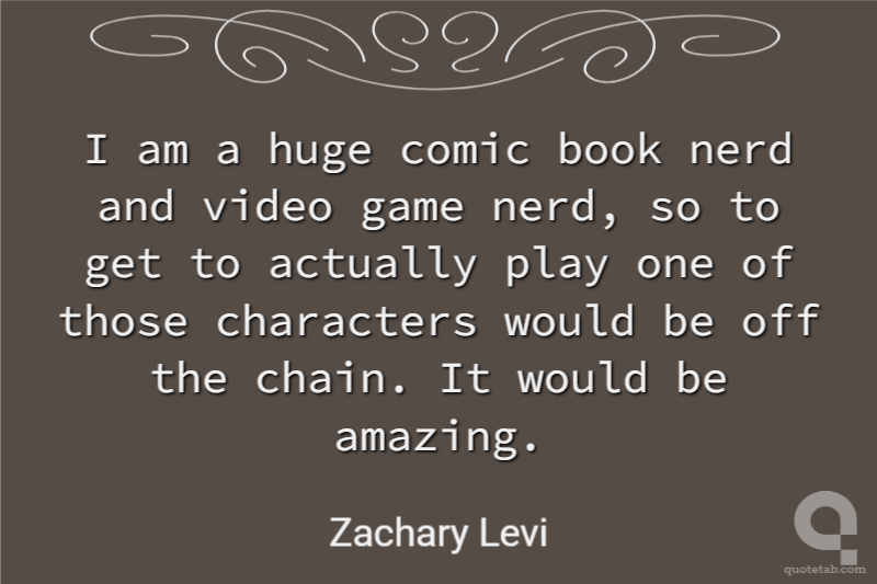 I am a huge comic book nerd and video game nerd, so to get to actually play one of those characters would be off the chain. It would be amazing.