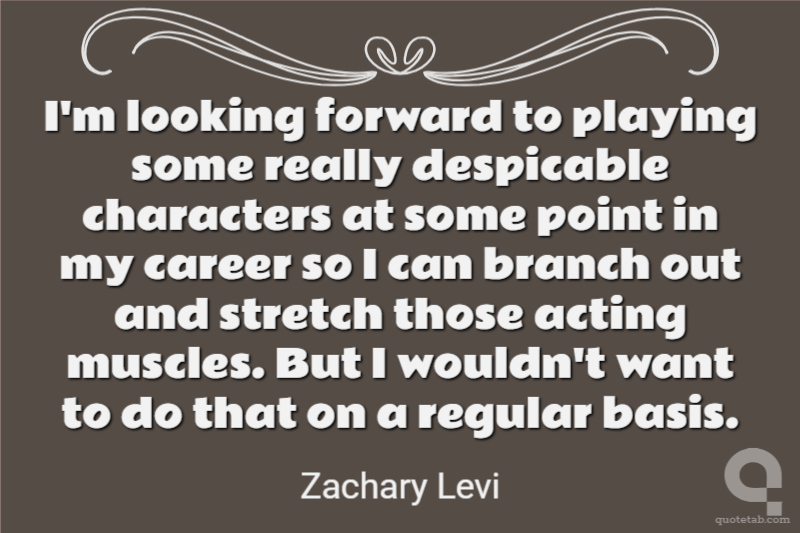 I'm looking forward to playing some really despicable characters at some point in my career so I can branch out and stretch those acting muscles. But I wouldn't want to do that on a regular basis.